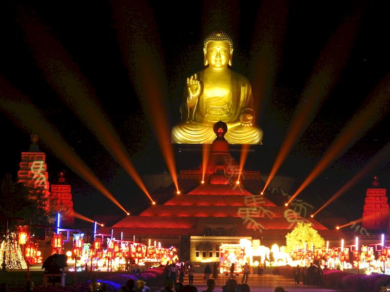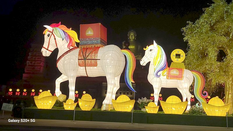 馬到成功吉星照 — 拍照打卡區:曼陀羅花園主燈「蓮華飛騎」、不二門大師互動燈區、聲音郵局,可錄下祝福寄給未來的自己;並有600架無人機於大雄寶殿上空展演燈光秀,重現釋迦牟尼佛「逾城出家」與「白馬馱經」故事,及星雲大師佛光山佈教弘法歷程,展演時間為初一至初六晚上8時30分。