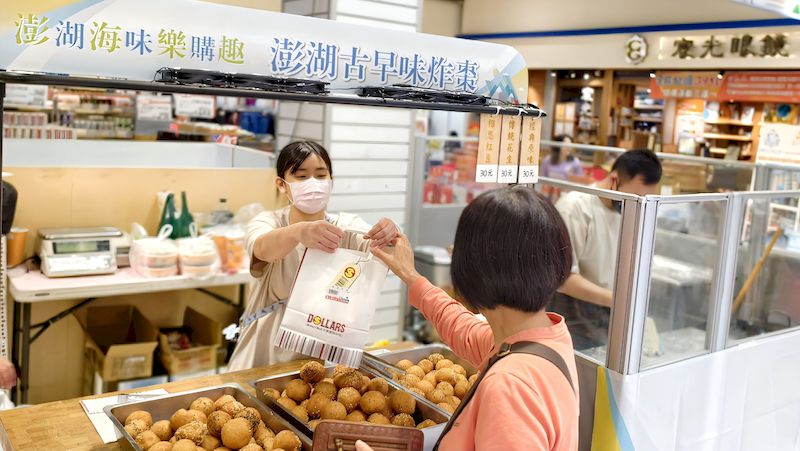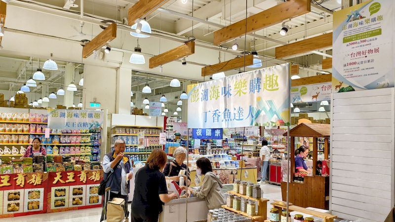 而在1F食品百貨區販售多樣來自「宏裕行」的新鮮水產,例如:花枝蝦排、海鮮蝦卷、飛魚卵花枝蝦餅、澎派蝦餅等,讓您嚐到滿滿的鮮甜味,海味十足!還有產地直送急凍鎖住現撈鮮美的「七美吻仔魚」、爽脆Q彈且越嚼越香甜的「狗母魚丸」,令人流連忘返的澎湖鮮味您一定不能錯過!