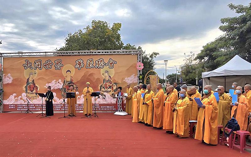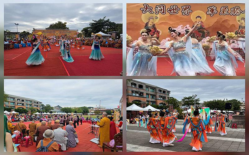 祈福儀式中,由釋圓三法師帶領與特別禮請法興禪寺聖雄長老及多位寺院住持共同參與,並由聲樂家陳惠群梵唱《華嚴字母誦》,搭配台北松山慈惠堂國樂團跨界共演,梵音繚繞、法喜充滿;多家敦煌舞團同步演出佛教藝術舞碼,呈現宗教與藝術交融的感動時刻,獲得現場民眾熱烈掌聲。