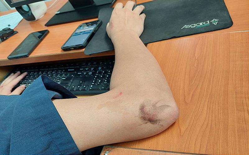 副分局長蔡維展表示,張女被帶返偵查隊後,情緒仍持續失控,在候詢室內大聲叫喊,並雙手連續拍打欄杆,有自傷之虞。員警進入候詢室實施管束時,張女又連續踢擊前往勸阻之偵查佐宋光耀,造成偵查佐右手虎口破皮挫傷,警方隨即依法上戒具加以管束,以防止張女持續自傷或攻擊他人。