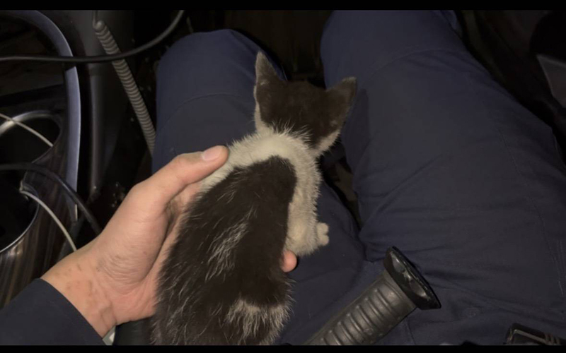 眼見號誌即將轉為綠燈,員警擔心機車起步恐傷及小貓生命,立即輕按喇叭並以警鳴喊話器示意騎士暫勿起步,兩人立即下車,一員於車後方警戒、提醒來車注意安全,一員趴地小心將車輪下的小貓抱出,所幸小貓未受傷。