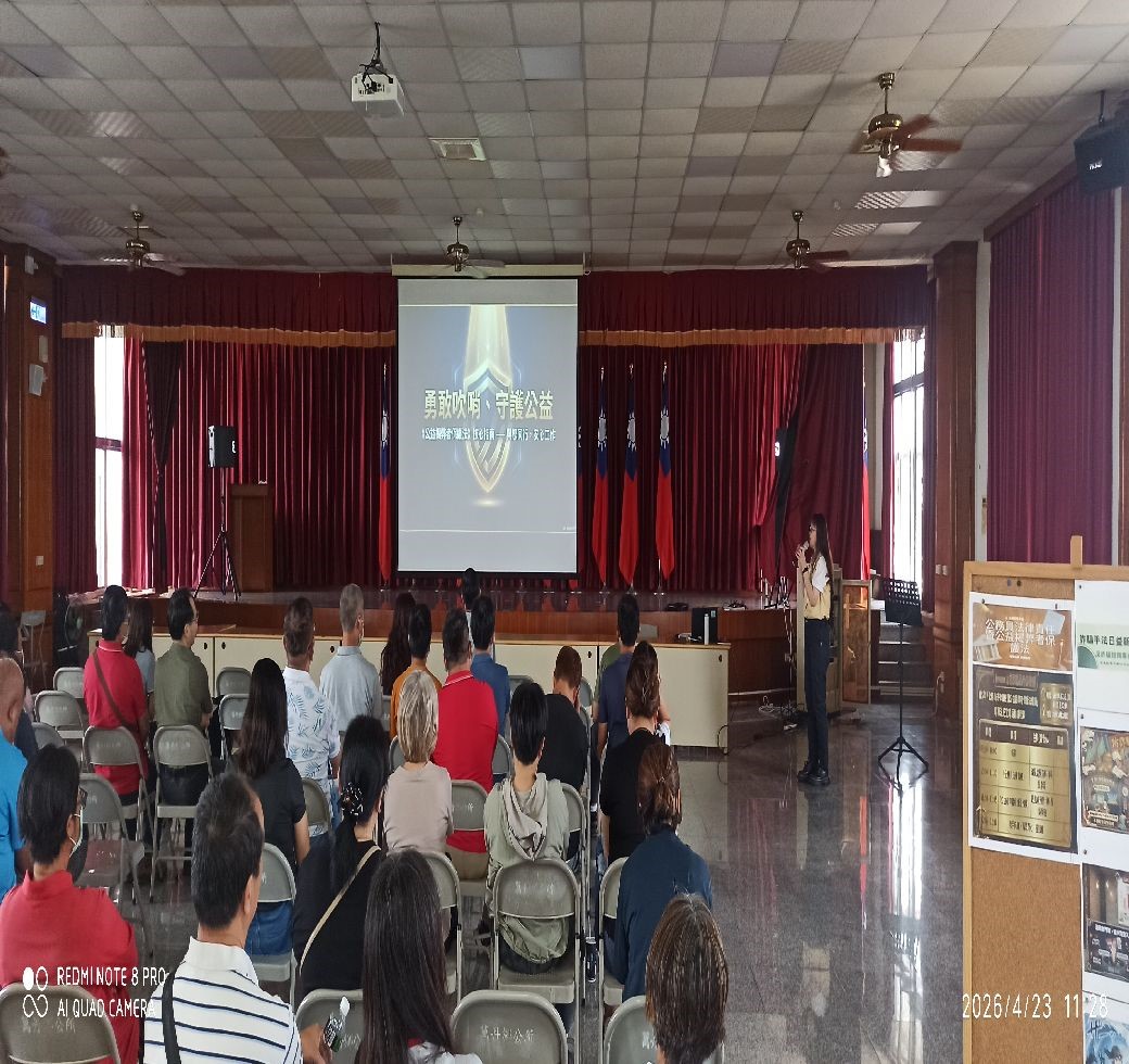 【記者張永漢/屏東報導】為落實廉能政府理念,屏東縣萬丹鄉公所於今(23)日上午10時,在公所3樓大禮堂辦理115年「公務員法律責任解析暨公益揭弊者保護法推廣」專案法紀宣導活動。本次活動旨在強化公所同仁的法律防禦力,並深入推廣已於去年正式施行的《公益揭弊者保護法》,以建構更加透明、誠信的公務環境。