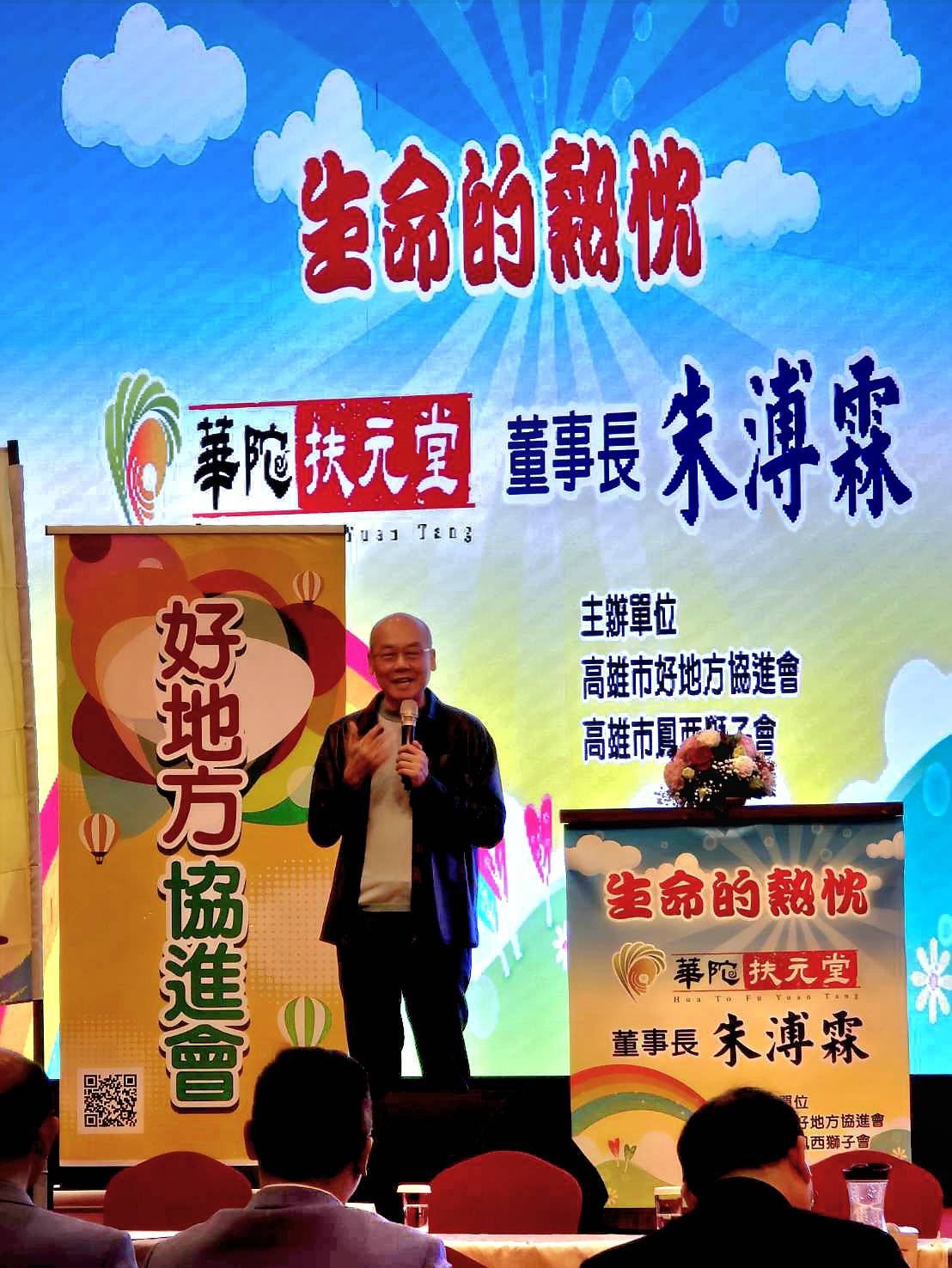 【記者張永漢/高雄報導】3月14日一場以「生命的熱忱」為主題的公益講座於高雄圓山飯店五樓龍鳳廳舉行,特別邀請華陀扶元堂董事長朱溥霖擔任主講人,吸引超過150位來賓到場參與,在春日午後共同聆聽一場關於人生信念、奮鬥歷程與企業精神的深度分享。