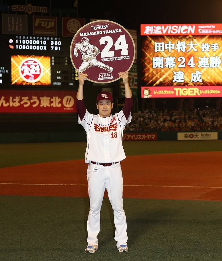 2013年球季東北樂天金鷲隊王牌投手田中將大在自身的精采投球與隊友的強大火力支援下,自季初即保持不敗之身,並在季末逐一打破過去由斉藤和巳,松田清,稲尾和久等強投保持的連勝紀錄,成功將紀錄刷新至單季24勝0敗,跨季28連勝,更達成自火腿隊間柴茂有後再度出現單季先發不敗的壯舉。
