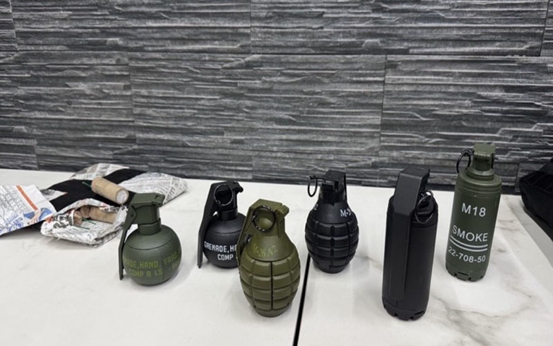 市刑大偵八隊隊長黃慶煌指出,積極深入跟監蒐證後,持臺灣高雄地方法院及臺灣高雄地方檢察署核發之搜索票與拘票前往其在鳳山區環河東街上的豪宅透天住處查緝,嗣犯嫌開門等候友人之際,趁犯嫌尚未反應,埋伏同仁快速衝入屋內控制犯嫌,當場緝捕並於屋內、桌上查獲子彈62顆、衝鋒槍彈匣2支、疑似煙霧彈2顆、疑似手榴彈4顆、火藥1包、匕首6把、斧頭1把、電擊棒1支、第三級毒品愷他命4包(毛重55功公克)、卡西酮咖啡包3包(11公克)、K盤3組、手機等證物,全案依槍砲彈藥刀械管制條例、毒品危害防制條例等罪移送臺灣高雄地方檢察署偵辦,張嫌經聲押後裁定10萬交保。