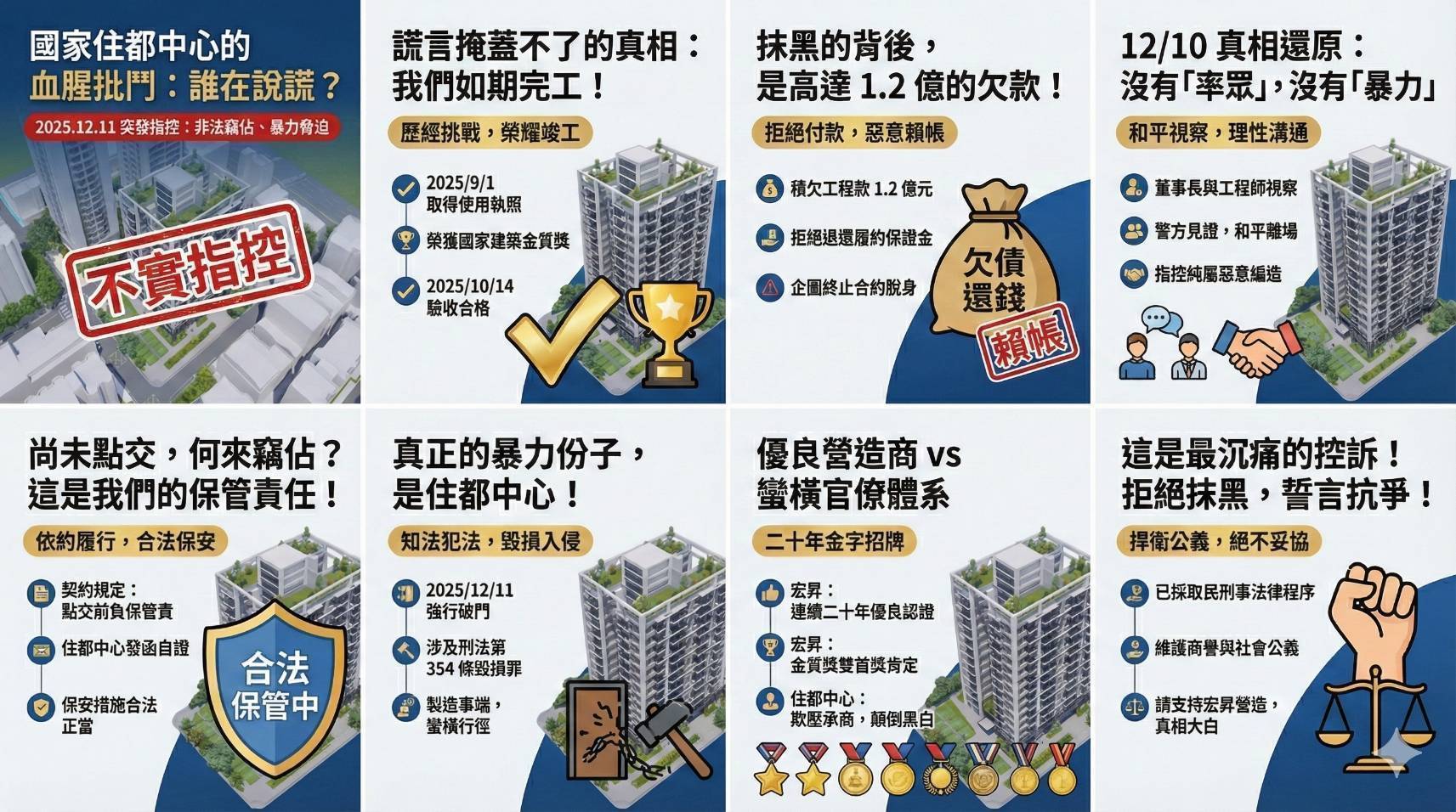 至於點交與現場爭議,郭倍宏強調,宏昇營造並無意「控制建物」或妨礙社宅後續使用,相關行為係基於工程責任尚未完全釐清、款項與保證責任仍未解除的情況下,為維護公司合法權益所採取的必要作為。宏昇始終主張應在權責明確、程序完備的前提下完成點交,避免日後產生更多爭議。