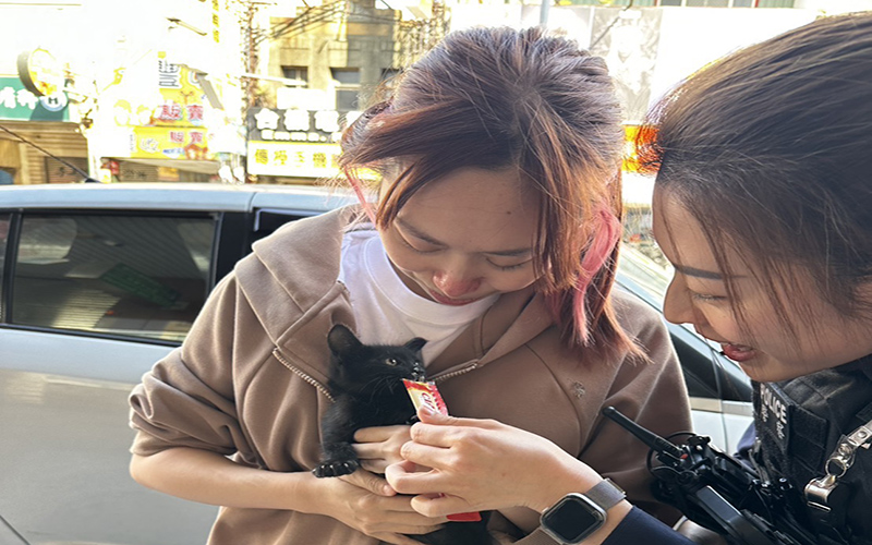 【記者朱國維/高雄報導】高雄市岡山分局壽天派出所於大年初一接獲民眾報案,指稱有小黑貓受困汽車底盤,副所長謝欣潔、警員陳采羚到達現場後與熱心車主多次嘗試誘捕未果,最終靈機一動買來貓咪肉泥作為誘餌,成功將小貓平安救出。目前小黑貓已由警方暫時安置,並應景命名為「初一」,讓這起春節期間的救援任務圓滿落幕。