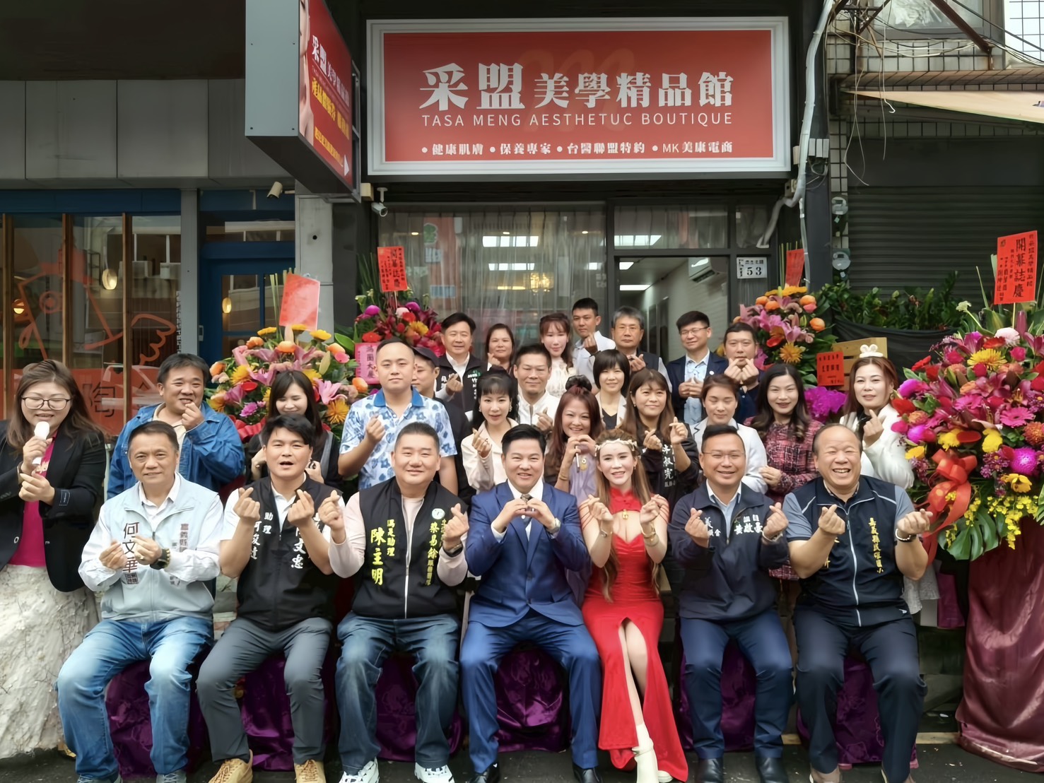 「采盟美學精品館」日前在嘉義正式開幕,立法委員蔡易餘、高雄新化妝品商業同業公會陳御斤理事長、王翠榮副理事長,以及采盟美學精品館店長張建華與多位政商界人士與產業代表到場見證。