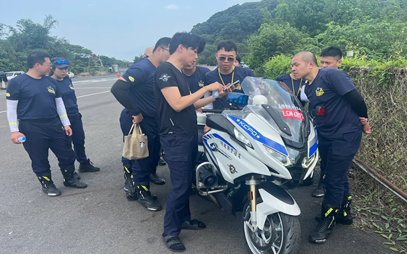 演練課程內容紮實,涵蓋多項實戰操駕技能,包括:暖身、慢速繞錐、高速繞錐、騎乘拿放物品、Z字形騎乘、全油門加速、緊急閃避及車輛攔停等講授科目。透過實地操作與交流,參與員警熟練掌握隊形變換與緊急應變能力,強化警用特勤大型重型機車隊的勤務效能。