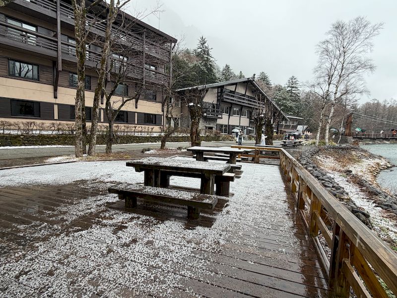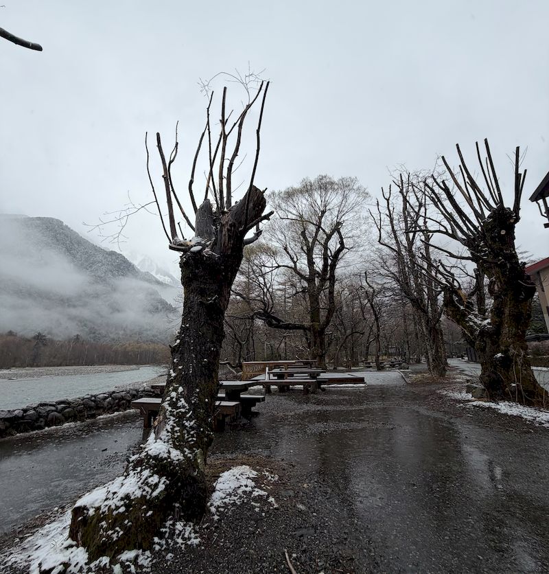 這場四月底的春雪,不僅為上高地增添一抹浪漫氛圍,也讓河童橋再次展現四季皆美的魅力。雨雪交織的瞬間,成為自然贈予旅人最詩意的禮物。
