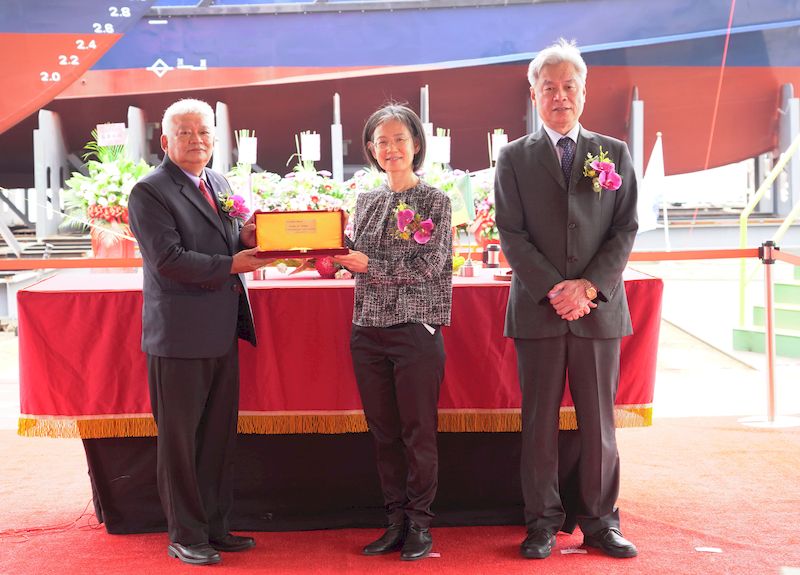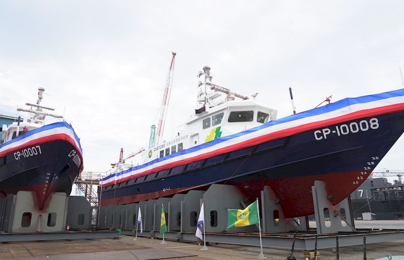 【記者李祖東/高雄報導】台灣國際造船股份有限公司(以下簡稱台船公司,股號:2208)承造財政部關務署100噸級巡緝艇2艘,今(28)日上午10時於台船公司高雄廠舉行命名暨下水典禮,由台船公司顏聰輝副總經理、關務署基隆關張世棟關務長及高雄關劉芳祝關務長共同主持,並邀請基隆關張世棟關務長擔任命名人,高雄關劉關務長擔任擲瓶人,祈求圓滿順遂、人員平安。