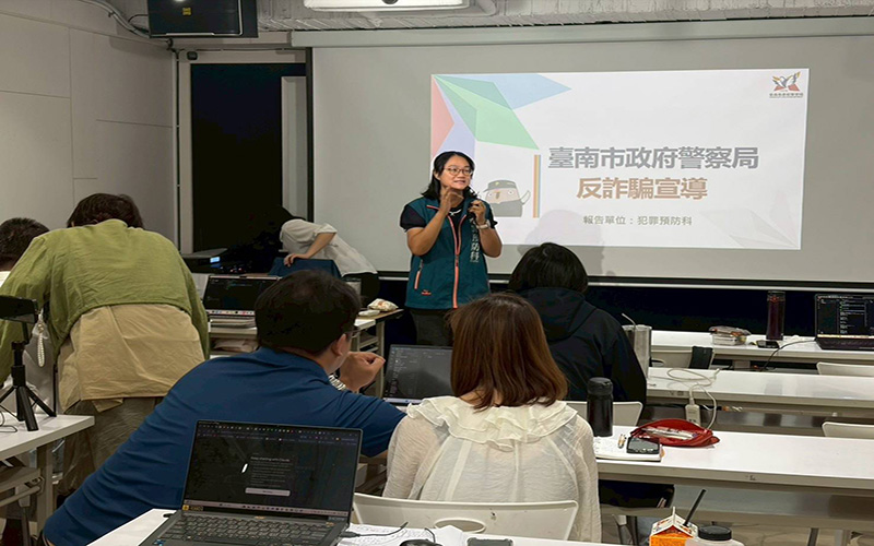 【記者朱國維/綜合報導】為擴展防詐宣導觸及範圍及完善現行反詐保護網,臺南市政府警察局主動出擊,跨界攜手「台南市美髮及美容美體業產業工會」,近日結合工會技職課程首次辦理2場次防詐講座,由南市警局宣導團講師直接面對面和美容產業第一線工作者,鎖定美髮美容、美甲等從業人員,分享網路購物詐騙、投資詐騙等高發詐騙手法、實際案例及防詐對策,鼓勵業者提升自我防詐意識,亦可主動與民眾討論防詐議題,在美麗變身的同時,一起守護個人荷包。