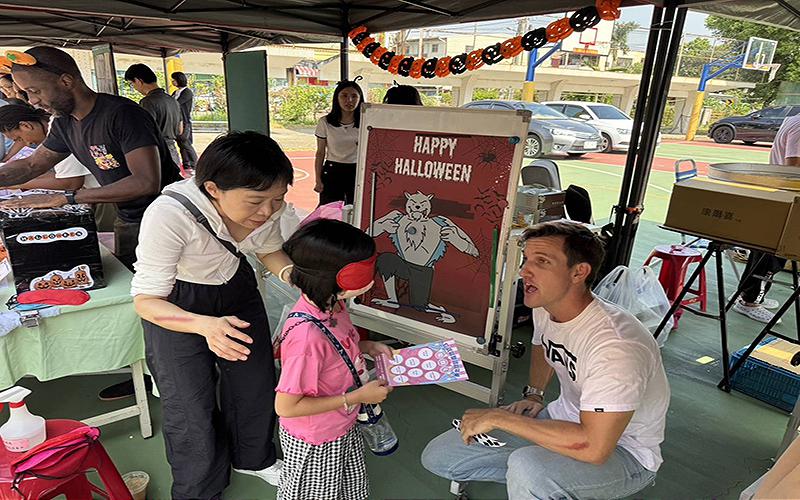在雙語互動攤位中,形式多元、創意十足。仁武高中由外師 Ronnie 與 Nick 融入萬聖節元素設計闖關活動,並結合科技體驗「Cyber Word」,讓學生在趣味挑戰中學習英語。仁武國小潘芊邑校長、登發國小范秋芬校長、八卦國小吳軒銘校長及烏林國小林文章校長所帶領的教師團隊,也分別設計結合遊戲與生活英語的互動活動,讓學生在愉快氛圍中自然開口說英語,現場氣氛熱絡、笑聲不斷。