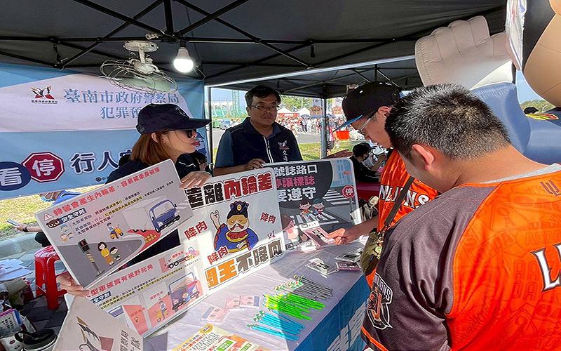 【記者朱國維/綜合報導】為提升民眾防詐意識,臺南市政府警察局結合亞太國際棒球訓練中心成棒主球場於3月29日迎來首場中華職棒例行賽,配合職棒開打熱潮及現場滿滿人潮,在現場設置犯罪預防宣導攤位,針對防詐反毒、交通安全、婦幼安全等議題面對面向民眾宣導,並透過防詐趣味問答及有獎徵答遊戲,讓民眾在享受棒球賽事之餘,也能提升自我保護意識及防詐知能。