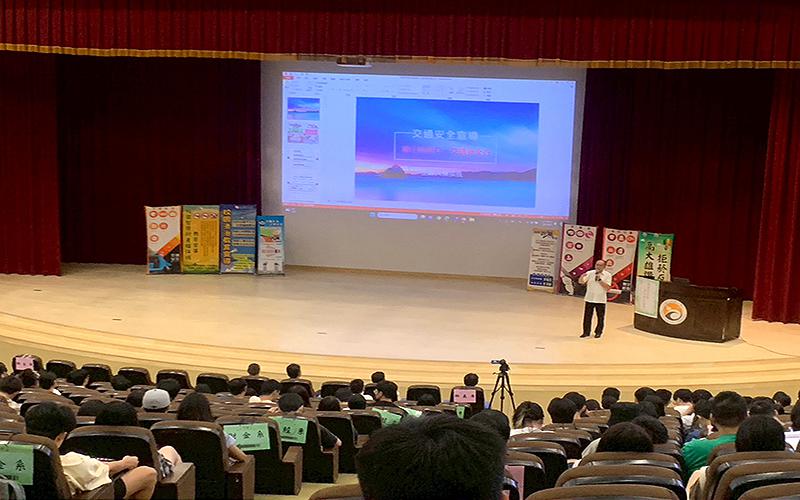 分局長陳奕良親自上台,結合轄區實際事故案例,提醒同學們務必遵守行人安全守則,騎乘機車必須正確佩戴安全帽,並特別注意「內輪差」與「遠離大型車」的防禦駕駛觀念。他強調,近期全台屢傳未禮讓行人事故,學生不論是駕駛機車、自行車,或是步行,都要遵循標誌、標線與號誌規範,行人應走行人道與斑馬線,尊重他人路權,才能保護自己與他人生命安全。