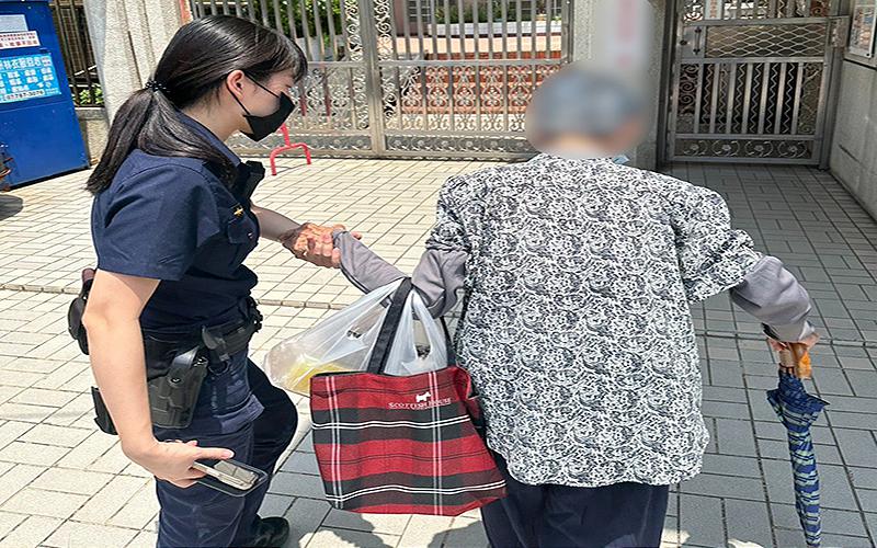員警到場發現92歲李姓老婦人神情慌張,趕忙上前安撫,原來她一大早就徒步到市場買菜,買完卻忘記回家的路,在市場徘徊了許久,幸好有熱心民眾發現她需要協助並聯繫警方,平安將她送回位在青埔街的住家。