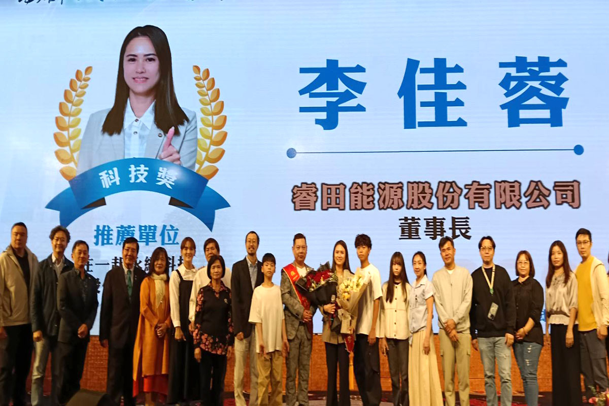 本屆「科技獎」由 睿田能源股份有限公司負責人暨總經理李佳蓉獲獎。睿田能源長期投入淨零建築與再生能源應用,聚焦「彩繪光電」等建築整合立面光電技術,致力在 建築美學、耐候安全、防眩光與施工效率之間取得平衡,協助公共場域與城市空間在不犧牲景觀的前提下完成減碳轉型。